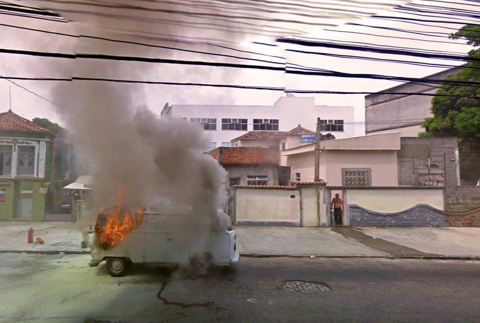 Google’ın dünyanın dört bir yanını görüntüleyen Street View hizmetinin korku dolu fotoğrafları yayınlandı. İşte google'ın bile anlam vermediği fotoğraflar... Yakalanan bir şüpheliye merhamet göstermeden eşlik eden polisin görüntüsü Street View’in korkutucu görüntülerinden biri. Japonya’nın on yıllardır kimsenin yaşamadığı maden kasabası Hashima’dan alınan bir görüntü. Kamyonetinin yanmakta olduğu gören bir adamın korkusu bu karede... Fransa’nın Nancy kentinde çekilen fotoğrafta, tuhaf ve korkutucu, zebaniye benzeyen bir ‘varlık’ görülüyor. Street View’in en esrarengiz karelerinden birinde, kırık bir yüz yer alıyor. Terk edilmiş bir çocuğu gösteren karede anne-baba Gucci mağazasında olabilir mi? Uzun süre haberlere konu olan bu kare, Botsvana’da çekildi. Street View aracı, eşeği ezip geçmekle suçlandı, Google ‘eşek ölmedi’ açıklaması yaptı. Hollanda’dan alınan bu görüntüde, sanki bir cinayetin ardından denize atılmak için iskeleye sürüklenmiş bir cesetin izleri görülüyor. Bu sefer, Alfred Hitchcock’un Kuşlar filmini andıran bir sahne karşımıza çıkıyor. Matrix filmini andıran bu karenin sırrı teknik bir hatada saklı olmalı. Bu karede yaralı veya hasta bir inek, yolun kenarına sürünürken görülüyor. ABD’nin Baltimore kentindeki ‘lanetli ev.’ Terk edilmiş kasabanın tek yerleşimcisi, ortalarda görülen bir hayalet... Gerilim filmlerini andıran bu sahnede, ormanın içinde pusuya yatmış maskeli bir adam görülüyor. ABD’nin Detroit kentindeki bir sokakta bir evin verandasında hiç de misafirperver olmayan birkaç adam görüntülendi. Kısa bir araştırma, aynı evde birkaç ay önce bir ceset bulunduğunu ortaya çıkardı... Şili’de yakalanan bu görüntüde bir çöplüğe tıkılmış mankenler korkutucu bir görünüm sergiliyor. Bir anayolda görüntülenen maskeli insanlar, Street View’in esrarengiz karelerinden biri. Bazıları bu görüntünün göklere yükselmekte olan bir meleği temsil ettiğini öne sürüyor. Japonya’da görüntülenen bu güvercinler google için korkunç bir şaka hazırladı. Google’ın dünyanın dört bir yanını görüntüleyen Street View hizmeti, bazen en beklenmedik sahneleri kullanıcılarının karşısına çıkarıyor. Street View’in gözlerden kaçan korku dolu sahnelerini toplayan blog yazarı Jon Rafman’ın koleksiyonu, bir uzaylıyla başlıyor.
