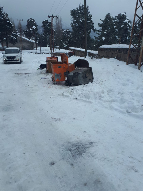 Galerinin tamamı için tıklayınızSarıçam Ormanları arasında yavan hayata da ev sahipliği yapan Sarıkamış’ta, kış uykusuna yatmayan yavru boz ayı ilçe merkezine indi. İlçe merkezinde yiyecek arayan boz ayı, vatandaşları umursamadan çöp konteynerlarını devirerek içerisinde yiyecek aradı.