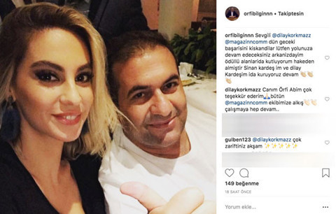 Galerinin tamamı için tıklayınızÖrfi Bilgin, söz konusu magazin sitesinin gecesinde ödül alan Dilay Korkmaz'la bir fotoğraf paylaşmış, Gülben Ergen de o fotoğrafın altına Dilay korkmaz için "Çok zariftininiz akşam" yorumunu düşmüştü.