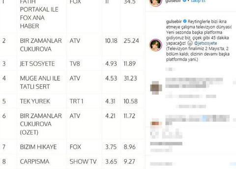 Gülse Birsel sosyal medyadan paylaştı!Jet Sosyete ile ilgili flaş kararı