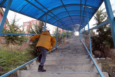 Galerinin tamamı için tıklayınızAdana’dan okumak için Gümüşhane’ye gelen ve merdivenlere ilk çıkışında nefes nefese kaldığını belirten Ayşe Zuhal Pelin, “Ben buraya ilk geldiğimde afalladım çünkü çok fazla yokuş çıkıyoruz. İlk çıktığımda da abartılacak bir durum olmadığını düşünüyordum ama nefes nefese kaldım. Her gün öğrenciler bu şekilde merdivenleri çıkıyor öğrencilerin okuma hevesi kalmıyor. Ben çok bunaldım. Burada bazı fakülteler var merdivenle ulaşım sağlanıyor, orada okuyan öğrencilere üzülüyorum biraz yorucu. Bütün arkadaşlarım benim gibi şikayet ediyor bu konudan” şeklinde konuştu.