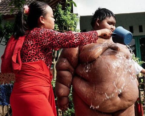 10 yaşındaki Arya Permana, dünyanın en kilolu çocuğu. 192 kilo ağırlığında olan Permana’nın günde 5 öğün pilav ve et yemekleri yediğini ifade eden ailesi, çocukları için kıyafet bulmakta zorlandığını belirtiyor. Yürüyemediği için okulu bırakan küçük çocuğun kilosundan dolayı nefes darlığı çektiğini belirten annesi, ölmesinden korktukları için diyete soktuklarını söylüyor. Yapılan diyetle de iki normal insanın karnının doyacağını belirten anne Permana, “Ya yemek yiyor ya da uyuyor. Doğduğunda normaldi. 2 yaşından sonra hızla kilo almaya başladı. İş kontrolümüzden çıkınca yardım aldık.” diyor.