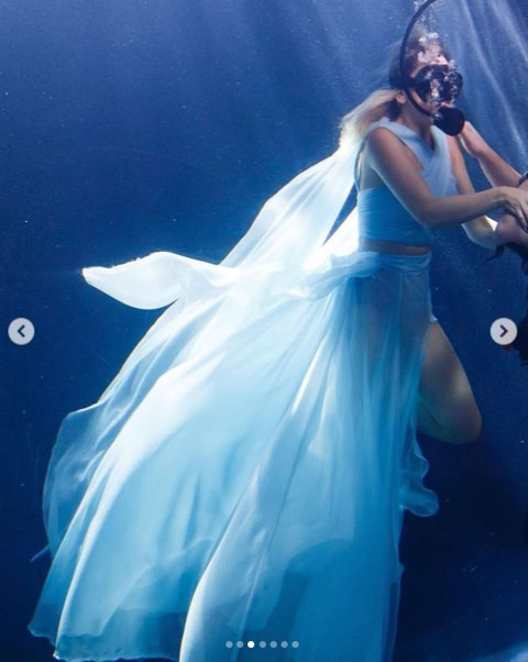 Dalış tüpü kullanarak havuzun içinde çekimler yapan Hadise o anlardan kareleri de Instagram'dan paylaştı.