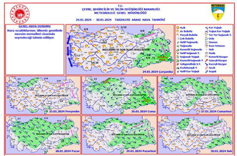 Galerinin tamamı için tıklayınızMeteoroloji Genel Müdürlüğü'nün haftalık hava tahmin raporuna göre Perşembe'den itibaren gelen yağışlı havanın Pazar günü yurdun büyük bölümünde kar yağışına dönüşeceği görülüyor.