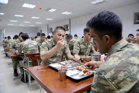 Galerinin tamamı için tıklayınızYemek saatinde buraya gelen rütbeli asker ve erler aynı sıraya girerek yemeklerini alıyor. Yemek sırasında erler, aynı zamanda masalarına oturdukları komutanlarıyla da sohbet etme imkanı buluyor. Tabur görevlisi bir er "Taburumuzda yemekler silah arkadaşlarımız tarafından yapılıyor. Burada çıkan yemekler çok memnunuz" dedi.