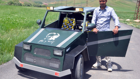 Yüksekova ilçesine bağlı Yeni Mahallesi’nde yaşayan ve çobanlık yapan Mehmet Şerif Karahan, sanayiden satın aldığı hurda malzemelerden 1,5 sene üzerinde çalışarak otomobil yaptı. Sıra dışı bir araç yapmak için kolları sıvayan Karahan, 1,5 sene süren çabalarının sonucunda aracını tamamlayarak yola çıkardı. Yaptığı ‘Hummer’ tarzı aracı deneme amaçlı Esendere yolu üzerinde trafiğe çıkartan Karahan, aracın ileri ve geri yön alma kabiliyetinin son derece iyi olduğunu ifade etti. 150 kilometre hıza kadar ulaşan ve ‘Bayrak-1’ ismini verdiği aracın üzerinde Atatürk resmi ve imzası da kullanan Karahan şöyle konuştu: “Özellikle yerli ve milli üretimle ilgilendiğim için bu sefer hayalini kurduğum aracı yaptım. Dışarıya bağlı kalmayarak artık yerli ve milli üretimimizi biz yapalım. Artık F-35 uçağımızı, arabamızı biz yapalım. Bende buna karşılık kolları sıvadım. Sanayideki eski malzemeleri satın alarak 1,5 sene içinde arabamı yaptım. Vites, korna, sinyal lambalar, araç koltukları, araç motoru ve bir araçta olacak tüm malzemeleri bu araçta kullandım.""Bu seviyeye getirene kadar 40 bin TL param gitti. Ben bir çobanım ve bunu yaptım. İmkânlarım olsa neler yaparım neler. Bu aracın ön tarafını kara şimşeğe benzetmeye çalıştım, arka tarafı ise tamamen Hummer’e benziyor. Ben bunu Teknofest’e yetiştirmek istiyordum. Maalesef kısıtlı imkânlardan dolayı gönderemedim. Ben bunu yapmak için bazen haftalarca internetten sipariş ettiğim malzemeleri bekledim. Çok zorlandım ama asla pes etmedim.”Yaptığı aracı Teknofest’e yetiştiremediği için çok üzüldüğünü dile getiren Karahan, “İmkânlarım yoktu, yoksa daha da güzel bir şey yapacaktım. Eğer imkânlar olursa 600 beygir gücünde araç yapacağım. Aracımın ağırlığı 700 kilodur ve 2 kişiliktir. Bayrak-1 isimli aracım 20 litre benzinle, yani bir depo benzinle 150 kilometreye kadar yol alabiliyor." dedi. "Ben aracı yapmak için inşaatlarda çalıştığım parayla bile malzemelerini aldım" diyen Karahan "Sırf hayalimdeki aracı yapabileyim diye. Bunu yaparken hiçbir el aletim de yoktu. Çalışarak malzemelerini aldım ve aracımı tamamlayabildim. Şükür şimdi ‘Hummer’ime binebiliyorum ve sürüyorum. Yetkililerden destek istiyorum, eğer destek olursa yapmayacağım hiçbir şey kalmayacak. Eğer aracımın gerçekten Teknofest değeri varsa onlardan da destek bekliyorum” ifadelerini kullandı.