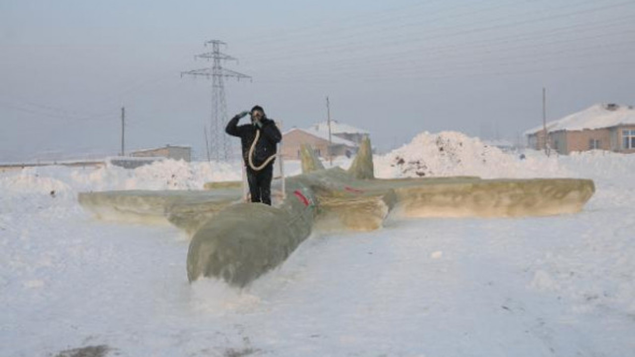 HAKKARİ'nin Yüksekova ilçesinde günlerdir etkili olan kar yağışı ile birlikte kar kalınlığı 1 metreyi bulurken hava sıcaklığının eksi 20'lere kadar düştüğü ilçenin Yeni Mahallesinde yaşayan ve inşaat işçiliği ile çobanlık yaparak geçimini sağlayan Mehmet Şerif Karahan, kardan 15 metre uzunluğunda 7 metre genişliğinde F-35 savaş uçağı yaptı. Daha önce de kardan helikopter, ev, dünya figürleri ile F-16 savaş uçağı yapan Karahan'ın kardan F-35 savaş uçağının yapımı 23 gün sürdü. Karahan, savaş uçağını, üzerine naylon ve çıta kullanarak kabin yapıp, 20 litre boya kullanarak yeşil renge boyadı ve üzerine Türk bayrağı astı. Tüm imkanlarını kullanarak yaptığı F-35 savaş uçağı için gerekli tüm malzemeleri kendi imkanlarıyla aldığını ve soğukla mücadele etmek zorunda kaldığını söyleyen Karahan, herkesi uçağını görmeye davet etti.