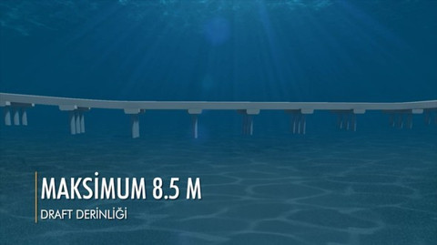 Deniz tabanına çakılan kazıklar üzerine kurulacak olan sualtı köprüsü deniz seviyesinin 8,5 metre altına inşa edilecek.