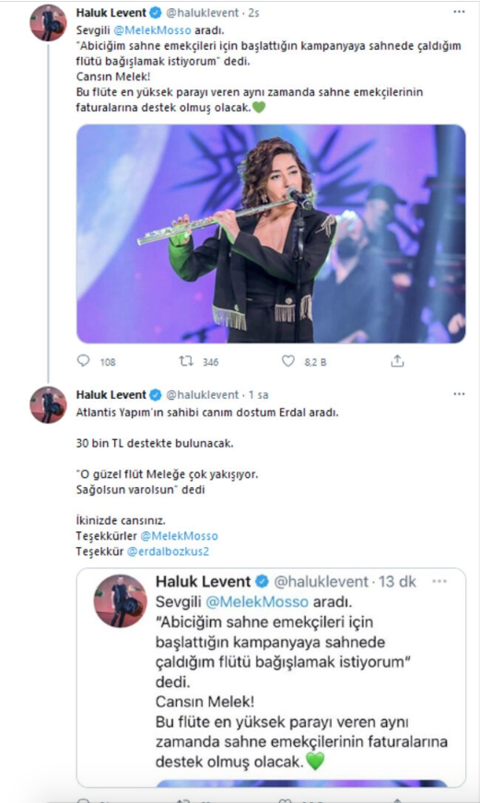 Levent, kısa bir süre sonra ise her iki enstrüman için de kampanyaya bağış yapıldığını açıkladı.