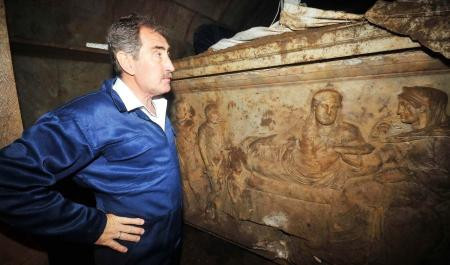 Galerinin tamamı için tıklayınızMezar odası ve lahit iki kez soyuldu. İkinci soygunda 60 cm’lik eşsiz bir altın heykel bulundu“ diyen Çelik, “Şimdi sıra bu lahitin çıkarılmasında... Lütfen çıktığında bu işi jandarmaya bildir, çalınmasına engel ol” dedi.