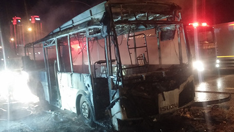 ANKARA'da hareket halindeki özel halk otobüsü, motorunda meydana gelen arızadan dolayı alev alıp yanmaya başladı. Şoför Ergülü Külük,alevleri zamanında fark ederek yolcuları tahliye ederken, otobüs ise tamamen yanarak demir yığını haline dönüştü. Çankaya ilçesindeki Dumlupınar Bulvarı üzerinde meydana gelen olayda; Ergülü Külük yönetimindeki 06 BHG 056 plakalı Sincan-Kızılay seferini yapan Ankara Büyükşehir Belediyesi Özel Halk Otobüsü, Bilkent Metro civarında motorunda meydana gelen arızadan dolayı alev aldı. Duman ve alevleri fark eden Külük, yolcuları hemen otobüsten indirdi. Alevler içinde kalan otobüsten hemen uzaklaşan yolcuların ihbarı üzerine olay yerine çok sayıda itfaiye, sağlık ve polis ekibi sevk edildi. Alevler içinde kalan otobüse müdahalede bulunan itfaiye erleri, yangını güçlükle kontrol altına aldı Polis ekipleri de bulvar üzerinde trafik akışını iki şeritten kontrollü olarak sağladı. Sağlık ekipleri ise olası bir yaralanmaya karşılık olay yerinde hazır bekledi. Demir yığını haline gelen otobüs olay yerinden kaldırıldıktan sonra yol trafiğe açıldı. Olayla ilgili inceleme başlatıldı.