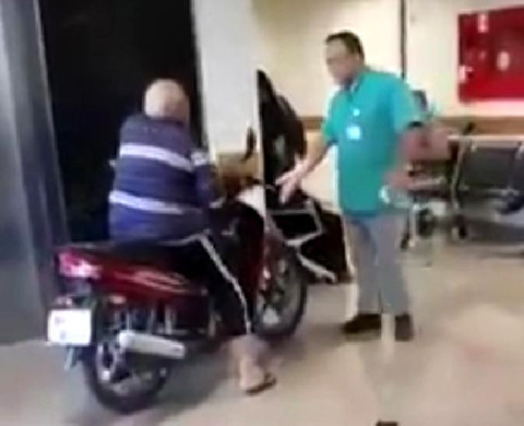 Galerinin tamamı için tıklayınızMotosikletiyle Hatay Devlet Hastanesi'nin polikliniklerinin olduğu bölüme 17 Ekim salı günü giren 60 yaşlarındaki bir hasta, görevli bir hasta bakıcı tarafından durduruldu. Görevlinin ikazıyla hastaneden çıkartılan motosikletli bazı kişiler tarafından cep telefonuyla görüntülendi.