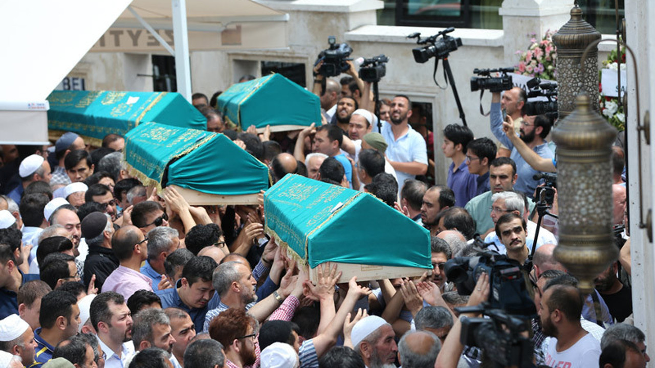 İstanbul Atatürk Havalimanı'ndaki terör saldırısında hayatını kaybeden Huda, Zehra, Kerime ve Meryem Amiri ile Habibullah Sefer, Zeytinburnu Seyit Nizam Camisi'nde kılınan cenaze namazının ardından son yolculuklarına uğurlandı. Terör saldırısında hayatını kaybeden eski milli güreşçi Serkan Türk'ün cenazesi, memleketi Samsun'un Çarşamba ilçesinde defnedildi. Anne Nazmiye Türk oğlunun tabutu başında ayakta durmakta zorluk çekti. Helallik alınmasının ardından Türk'ün cenazesi, aynı mahalledeki mezarlıkta kılınan namaz sonrasında 17 yıl önce kaybettiği babasının yanına defnedildi. Atatürk Havalimanı'nda düzenlenen terör saldırısında hayatını kaybeden taksi şoförleri Ali Zülfikar ve Erol Eskisoy'un cenazeleri havalimanına getirilerek, mesai arkadaşlarından helallik istendi. Taksi şoförlerinin yakınları üzüntü yaşadı.