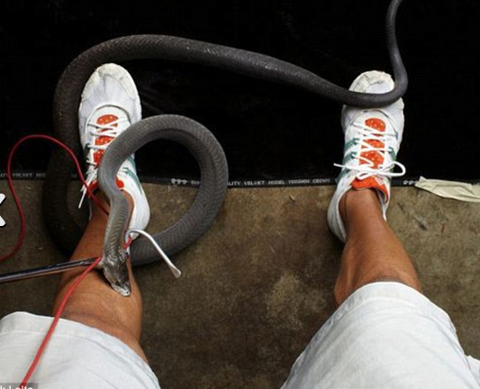 Galerinin tamamı için tıklayınızVahşi doğa fotoğrafçısı Mark Laita dünyanın en tehlikeli yılanlarından biri tarafından ısırıldı. Ölümcül ısırığı fark etmeyen Laita o anı tesadüf eseri görüntülemişti. Fotoğrafçı Mark Laita son projesi için yılan fotoğrafları çekiyordu. “Serpentine” adını verdiği projesinin en nadide karesinde dünyanın en tehlikeli yılanlarından biri olan siyah mamba tarafından ısırıldı. Mamba zehrini akıtmadığı için ısırığı hissetmeyen Laita sokulduğu anı tesadüf eseri görüntülediği fotoğrafta gördü.