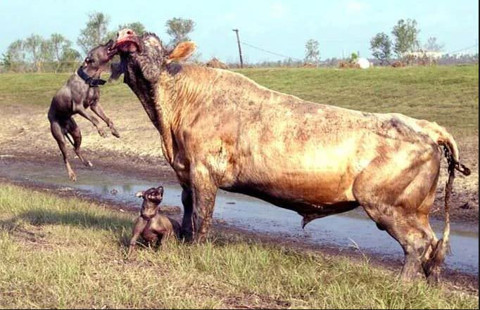 Galerinin tamamı için tıklayınızİki pitbull cinsi köpek bir boğaya saldırırsa ne olur? Son derece tehlikeli olan iki pitbul bir boğaya saldırıyor. Bakalım pitbulllarla boğa savaşında kazanan kim oluyor?