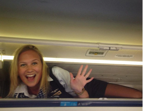 içerisine girerek poz veren hostesler, bu kareleri '#overheadbin'