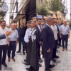 Hulusi Akar, işletmenin önünde geldiğinde dükkan sahibi tarafından "Dikkat" komutuyla karşılandı.