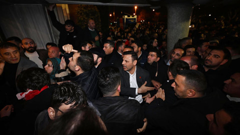 Güvenlik görevlilerinin izin vermemesi üzerine camları yumruklayan göstericiler ile görevliler arasında arbede yaşandı.