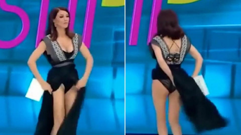İşte güzel sunucunun canlı yayında başına gelen talihsiz anlar...
