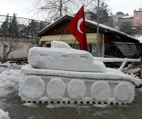 Galerinin tamamı için tıklayınızTokat'ın Niksar ilçesinde yaşayan 2 kardeş, Fetullahçı Terör Örgütü'nün (FETÖ) darbe girişimine tepki amacıyla kardan tank yaptı.