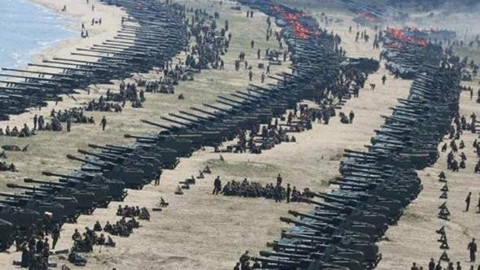 füzeleri sergileyen Kuzey Kore, bu kez de yüzlerce topçuyu sahil