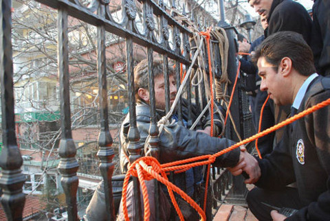 Galerinin tamamı için tıklayınızBursa'da bir seyyar satıcı, belediye yetkililerinin kendisine büfe yeri vermemesi üzerine Setbaşı Köprüsü'ne çıkarak intihara kalkıştı