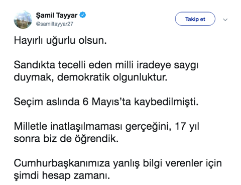 etti. Tayyar, "Milletle inatlaşılmaması gerçeğini, 17 yıl sonra biz