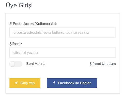 istemiyorsanız facebook hesabınız üzerinden de hızlı giriş