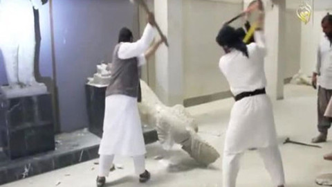 Terör örgütü IŞİD, Irak'ın binlerce yıllık kültür mirasını yok etmeye devam ediyor. IŞİD son olarak Ninova eyaletinde bir müzede bulunan binlerce yıllık heykelleri kırdı. Müzeye giren IŞİD militanları, 7 yüzyıla ait heykelleri balyozlarla hedef aldı. Irak'ın Ninova eyaletindeki bir müzede bulunan binlerce yıllık heykelleri parçalayan IŞİD militanları bu anları kaydederek internette yayınladı. IŞİD militanları geçtiğimiz günlerde de Musul kent kütüphanesindeki çok sayıda nadide eseri yakmıştı. Yakılan belgeler arasında Osmanlı döneminden kalan kitap ve haritalar da bulunuyordu. IŞİD son dönemde kütüphanelerde yaktığı ya da tahrip ettiği eserlerin 10 binden fazla olduğu belirtiliyor.