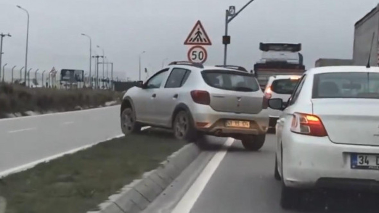 KOCAELİ'nin Gebze ilçesinde, bir sürücü trafik ışıklarında beklememek için aracıyla refüje çıkıp karşı şeritte ilerledikten sonra yeniden refüjü aşarak aynı yola girdi. Sürücünün trafiği tehlikeye düşürdüğü anlar cep telefonuyla kaydedildi. Gebze Organize Sanayi Bölgesi'nde trafik ışıklarına yaklaşıldığı sırada bir otomobil sürücüsünün yaptıkları ile çevredekileri şaşkına çevirdi. 41 YS 574 plakalı otomobili ile refüje çıkıp karşı şeride geçerek ilerleyen sürücü, karşıdan araçların gelmesi üzerine yeniden refüjü aşıp trafik ışıklarının önüne doğru yaklaştı. Sürücünün trafiği tehlikeye düşürdüğü anlar cep telefonu ile görüntülenerek, sosyal medyada paylaşıldı.
