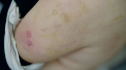 Dayak sonucu oluştuğunu söylediği omzundaki ve sırtındaki izleri bize gösteriyor. “Bize saldıran köpekte kenarları çok keskin bir ağızlık vardı. Ağızlık ve pençeleri tüm vücudumda izler bıraktı.” Meggido Hapishanesi’nde böyle iki kez dayak yediğini, Nafha Hapishanesi’nde de sayamayacağı kadar çok kez dayak atıldığını belirtiyor.