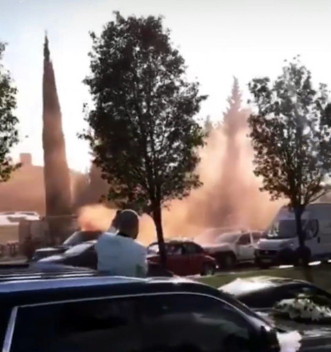 Galerinin tamamı için tıklayınızBurada bir süre bekleyen magandalardan biri, eline aldığı tabanca ile binaların arasında güpegündüz havaya defalarca ateş açtı. Ardından grup, salona gitmek üzere konvoy halinde E-5 karayoluna bağlandı. Dehşet dakikaları bundan sonra başladı.