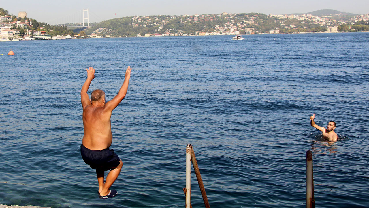 Meteoroloji Genel Müdürlüğü tarafından yapılan uyarının ardından sıcaklık değerleri mevsim normallerinin üzerine çıkarak 35 dereceye yaklaştı. Ekim ayında yazdan kalma havayla şaşıran İstanbullular ise soluğu İstanbul Boğazı'nda aldı. Çanakkale'de, 8 Ekim 1984'te tarihinde 31.7 olan azami sıcaklık değeri, bugün 31.8 derece ile 36 yıl aradan sonra rekor kırdı. Balıkesir'de ise 3 Ekim 1952'de 33.3 olarak ölçülen sıcaklık, bugün 36.5 derece ölçüldü ve 68 yılın rekoru kırılmış oldu. İstanbul'da hava sıcaklığı 35 dereceyi görünce vatandaş bunaldı. Kimi vatandaşlar boğaz kenarında yürüyüş yaparken kimi vatandaşlar ise kendilerini boğazın serin sularına bırakarak nefes aldı.Ağustos ayı gibi sıcaklık var Yazdan kalma bir hava olduğunu belirten Haşim Eren," Bugün havanın sıcak olacağını duyduk bizde soluğu boğazda aldık. Ağustos ayından kalma bir hava var. Dalıp dalıp çıkıyoruz. Fırsatı değerlendirelim dedim" ifadelerini kullandı.Gaziosmanpaşa'dan yüzmeye gelen bir başka kişi ise," Harika bir su var. Sıcak havayı görünce Gaziosmanpaşa'dan motosiklete atlayıp geldik. Bir daha böyle bir havayı bulamayız uzun bir zaman. Yavaş yavaş kış geliyor" şeklinde konuştu.Çanakkale ve Balıkesir de yandı! Türkiye'nin büyük bölümünde etkili olan mevsim normalleri üzerindeki sıcak havalar, Çanakkale'de ve Balıkesir'de de yazdan kalma günlerin yaşanmasına neden oluyor. Hava sıcaklığının ekim ayında 30 derecenin üzerine çıktığı kentte lodosun etkisiyle sıcaklıklar daha yüksek hissediliyor.Çanakkale Boğazı'nda ve Edremit Körfezi'nde rüzgar olmaması nedeniyle denizin üzerinde zaman zaman 'çarşaf gibi' deyimi gerçek oluyor. Yazdan kalma havayı bulan vatandaşların bir bölümü ekimde deniz keyfi yaşarken, bir bölümü de kordon boyunda yürüyüş yapıyor. Kimisi de oltasını alıp, balık tutuyor. Ekim ayında Çanakkale'de en yüksek sıcaklıkların ortalaması 20.7 derece, aynı periyottaki ortalama hava sıcaklığı ise 16.2 derece oldu. 1929 yılında başlayıp günümüze kadar devam eden meteorolojik ölçümlerde ekim ayında rekor; 8 Ekim 1984 yılında ölçülen 31.7 derece ile kırılırken, bugün ölçülen 31.8 derecelik sıcaklık ile 36 yılın rekoru kırılmış oldu. Çanakkale'ye komşu Balıkesir'de ise, 1927 yılından günümüze kadar devam eden meteorolojik ölçümlerde ekim ayı sıcaklık rekoru 3 Ekim 1952'de 33.3 derecelik sıcaklık ile kırılırken, bugün ölçülen 36.5 derecelik sıcaklık ile 68 yılın rekoru kırılmış oldu. Balıkesir'de ekim ayında en yüksek sıcaklıkların ortalaması 19.9 derece olurken, aynı periyottaki ortalama hava sıcaklığı ise 13.1 derece oldu.Ekim ayında mevsim normalleri üzerinde seyreden hava sıcaklıklarının önümüzdeki 3 gün boyunca devam etmesi bekleniyor. İşte İstanbul, Çanakkale ve Balıkesir'den sıcak hava ve serinleme manzaraları...