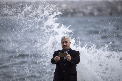Etkili olan lodos Kabataş sahilinde dev dalgalar oluşturdu. Lodosa rağmen vatandaşlar balık tutup selfie çekti.
