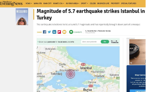 İngiltere’nin önde gelen yerel gazetelerinden Manchester Evening News, depremin İstanbul genelinde hissedildiğini ve bir caminin minaresinin yıkıldığını yazdı.