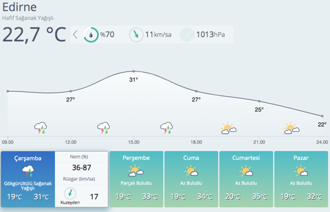 İstanbul'da beklenen sağanak yağış saat 11.00 itibariyle etkili bir şekilde başladı. Meteoroloji uyarısında Silivri, Çatalca, Arnavutköy, Büyükçekmece'de ilçeleri sel, yıldırım ve rüzgara karşı uyarıldı. İstanbul saatlik hava durumu tahminiŞiddetli yağış kentin her yerinde etkili oluyor. Sel baskınlarına yolaçma ihtimali yüksek olan kuvvetli yağışlar gece yarılarına kadar devam edecek. Meteorolojinin yayınladığı saatlik tahmine göre yağışlar yeni güne sarkacak. Bu illerde yaşayanlar dikkatMeteoroloji Genel Müdürlüğü tarafından yapılan uyarıda İstanbul dışında Kırklareli, Edirne, Tekirdağ, Bursa, Kocaeli, Sakarya, Düzce, Zonguldak, Bolu, Karabük, Yalova, Bartın, Kastamonu illeri de uyarıldı. Meteoroloji Kırklareli çevreleri ve Tekirdağ'ın doğu kesimleri Saray, Çerkezköy, Muratlı, Çorlu, Marmara Ereğlisi ilçeleri için ise ayrı olarak alarm verdi. Bu yerlerde yağışlar ani sellere ve yıldırım düşmeleri ile rüzgara sebep olacak. Kuvvetli yağışların etkili olacağı illerdeki hava durumu tahminleri şu şekilde: