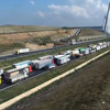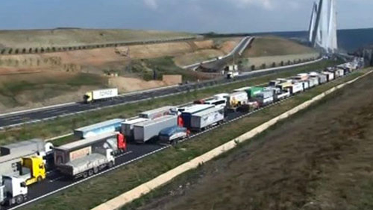 İstanbul trafiği felç 5 kilometrelik kuyruk oluştu Galerinin tamamı için tıklayınız İstanbul'da Yavuz Sultan Selim Köprüsü'nün Avrupa Yakası'ndaki ayağında bulunan kule vincin söküm çalışması nedeniyle 4 şeritli yolun 3 şeridi trafiğe kapatıldı. Çalışma nedeniyle İstanbul'da uzunluğu 5 kilometreye varan araç kuyrukları oluştu.