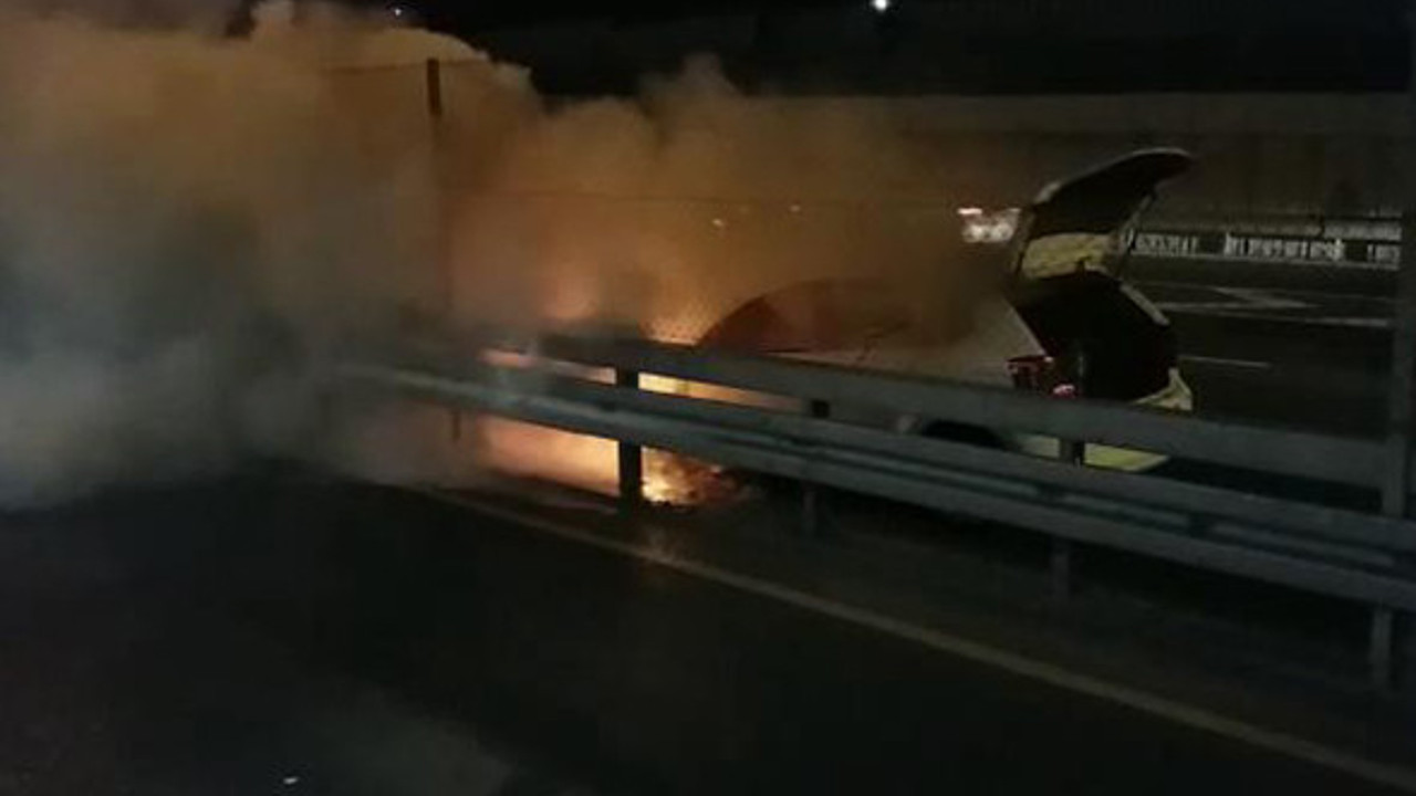 İstanbul D-100 Karayolu Ankara istikameti Bayrampaşa-Maltepe metrobüs durağı önünde, saat 20.30 sıralarında, bir otomobil seyir halindeyken alev aldı. Sürücü, aracı durdurup kendini dışarı attı. Aracın motor kısmı kısa sürede alev topuna döndü. Bölgeye sevk edilen itfaiye ekipleri alev alev yanan otomobili söndürdü. Yangın nedeniyle yolda trafik yoğunluğu yaşandı. Yangın, saat 20.30 sıralarında D-100 Otoyolu Bayrampaşa-Maltepe Metrobüs Durağı önünde meydana geldi. Edinilen bilgiye göre, D-100 Otoyolu Ankara istikametinde seyreden bir otomobil henüz belirlenemeyen bir nedenden alev alarak yanmaya başladı. Araçtan dumanlar yükseldiğini fark eden sürücü aracı durdurarak aşağıya inip, diğer sürücülerden yardım istedi. Aracın yandığı gören yoldaki sürücüler itfaiye ve polis ekiplerini arayarak durumu bildirdi. Olay yerine gelen itfaiye ekiplerinin yaptığı müdahale sonrası yangın kontrol altına alınarak söndürüldü. Yangın nedeniyle D-100 otoyolunda trafik yoğunluğu yaşanırken, araçta oluşabilecek patlama riski nedeniyle kısa bir süre metrobüs seferleri tek şeritten yapıldı. Yangın mahalline gelen polis ekipleri aldıkları güvenlik önlemleriyle yanan aracın bulunduğu şeridi trafiğe kapatarak diğer şeritlerden akışı sağladı. İstanbul D-100 Karayolu Ankara istikameti Bayrampaşa-Maltepe metrobüs durağı önünde, saat 20.30 sıralarında, bir otomobil seyir halindeyken alev aldı. Sürücü, aracı durdurup kendini dışarı attı. Aracın motor kısmı kısa sürede alev topuna döndü. Bölgeye sevk edilen itfaiye ekipleri alev alev yanan otomobili söndürdü. Yangın nedeniyle yolda trafik yoğunluğu yaşandı. Yangın, saat 20.30 sıralarında D-100 Otoyolu Bayrampaşa-Maltepe Metrobüs Durağı önünde meydana geldi. Edinilen bilgiye göre, D-100 Otoyolu Ankara istikametinde seyreden bir otomobil henüz belirlenemeyen bir nedenden alev alarak yanmaya başladı. Araçtan dumanlar yükseldiğini fark eden sürücü aracı durdurarak aşağıya inip, diğer sürücülerden yardım istedi. Aracın yandığı gören yoldaki sürücüler itfaiye ve polis ekiplerini arayarak durumu bildirdi. Olay yerine gelen itfaiye ekiplerinin yaptığı müdahale sonrası yangın kontrol altına alınarak söndürüldü. Yangın nedeniyle D-100 otoyolunda trafik yoğunluğu yaşanırken, araçta oluşabilecek patlama riski nedeniyle kısa bir süre metrobüs seferleri tek şeritten yapıldı. Yangın mahalline gelen polis ekipleri aldıkları güvenlik önlemleriyle yanan aracın bulunduğu şeridi trafiğe kapatarak diğer şeritlerden akışı sağladı.