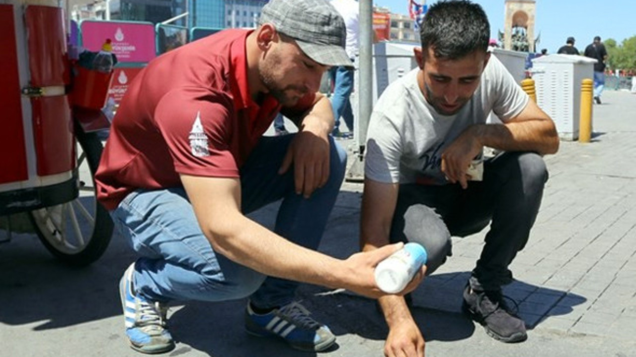 İstanbul yanıyor sıcağa dikkat çekme yöntemi ise bomba Galerinin tamamı için tıklayınız İSTANBUL Taksim Meydanı'nda esnaflık yapan Özal Maskan, hava sıcaklığındaki artışa dikkati çekmek istedi.