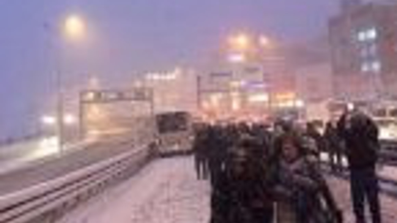 İstanbul'da etkisini artıran kar yağışının tipiye dönüşmesi nedeniyle trafikte yoğunluk yaşanırken, Haramidere'de bir metrobüsün yoldan çıkması seferleri bir süre durdurdu. Kentte sabah saatlerinde başlayan ve yer yer şiddetini artıran kar yağışı, trafik akışını olumsuz etkiliyor. Şehir içinde görüş mesafesinin azalmasıyla E-5 karayolu ve TEM otoyolu başta olmak üzere ana arterlerdeki trafik, zaman zaman durma noktasına geldi. Beylikdüzü'nde şiddetlenen kar yağışı ve buzlanma nedeniyle Haramidere'de bir metrobüs kayarak, yolu çift yönlü trafiğe kapattı. Bu nedenle Beylikdüzü-Avcılar arasında seferler bir süre durdu. Metrobüse müdahale edilmesinin ardından seferler normale döndü. Bu kaza, tüm hattaki seferleri olumsuz etkiledi. Metrobüs duraklarında yoğunluk yaşanırken, bazı duraklarda vatandaşlar, ilerleyemeyen metrobüsten inip, yürüyerek yoluna devam etti. Metrobüs seferlerinin aksaması nedeniyle bazı vatandaşlar da Boğaziçi Köprüsü'nü yürüyerek geçti. TRAFİK POLİSLERİNİN İZİNLERİ İPTAL EDİLDİ Bu arada, İstanbul Emniyet Müdürlüğü, kar yağışı nedeniyle trafik polislerinin izinlerini iptal etti. Trafik ekipleri, akışın sağlanması için kent genelinde görev yapıyor. Ekipler, emniyet şeritlerini olası acil durumlar için açık tutmaya çalışıyor. Yetkililer, sürücüleri kış lastiği ve köprülerdeki erken buzlanmaya karşı uyarırken, belediye ekipleri de tuzlama ve yol açma çalışmalarını sürdürüyor.