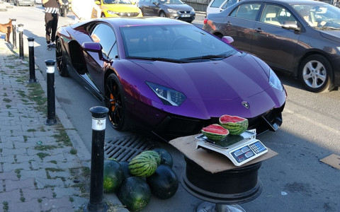 İranlı fenomenin karpuz satmakta kullandığı araç, ünlü İtalyan spor otomobil üreticisi Lamborghini'nin en üst seviyede v12 silindirli motorlu versiyonu olan Aventador... Bu araç ülkemizde 2. el olarak ortalama 5 milyon TL'ye satın alınabiliyor.