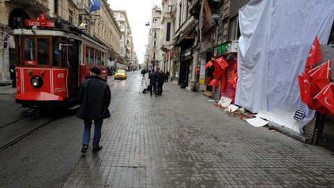 İstanbul sokaklarında dün akşam alışılmışın dışında bir sakinlik yaşandı. Şehrin yollarında trafik yoğunluğu zaman zaman hiç görülmediği şekilde yüzde 18'lere kadar düştü. Taksim Meydanı gibi hafta sonu gecelerinde hareketli olan yerlerin ise kısmen boş olduğu göze çarptı. İstiklal Caddesi'nde daha çok turistlerin bulunduğu görüldü. Nevizade ve Balık Pazarı'ndaki eğlence yerleri açılmadı. Taksim'de bombalı saldırının gerçekleştiği yeri ziyaret edenler oldu. Öte yandan Nişantaşı, Teşvikiye, Rumeli Caddesi, Kadıköy, Bağdat Caddesi'de dün gece tenhaydı. Eğlence mekanlarının bulunduğu sokakların bombaş kaldığı, trafiğin ise son derece sakin olduğu gözlendi. Hollanda'nın İstanbul Başkonsolu Robert Schuddeboom, saldırının ardından akşam saatlerinde açılan İstiklal Caddesi'ne çocuklarıyla çıkarak Twitter'dan paylaşımda bulundu. Beyoğlu'nda yaşanan canlı bomba saldırısı sonrası, olay yerine Türk bayrakları ve çicekler konuldu. (Foto: Mustafa Özdabak/İstanbul DHA)