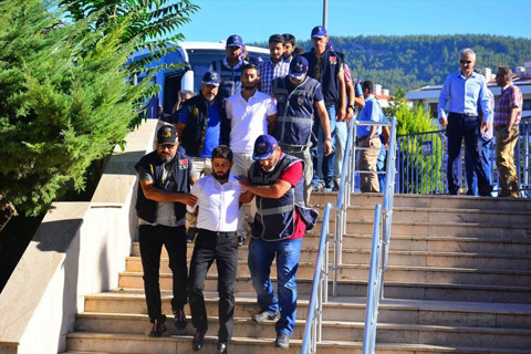 Galerinin tamamı için tıklayınızUla ilçesine bağlı Şirinköy Mahallesi'nde vatandaşların ihbarı üzerine başlatılan çalışmalar kapsamında 31 Temmuz gecesi yakalanan Enes Yılmaz, Ergün Şahin, İsmail Yiğit, Mehmet Demir, Muhammet Burak İpek, Murat Köse, Şükrü Seymen, Bahadır Sagun, Mehmet Öztürk, Mustafa Serdar Özay ile Muammer Gözübüyük'ün Muğla Emniyet Müdürlüğünde 17 gün süren sorguları tamamlandı.