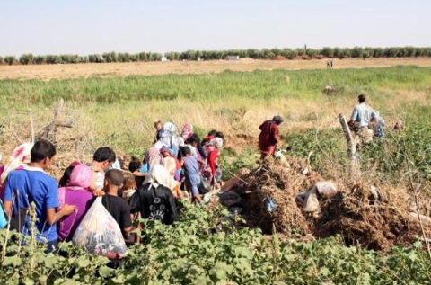 Galerinin tamamı için tıklayınızYaşlıların bastonlarla gidebildiği bu kaçışta kadınlar, çocuklarını kucaklarında taşıdı. Keskin nişancıların hedefi olmaktan korkarak kaçan köylüler, bir diğer korkuyu ise Türkiye sınırındaki mayınlı bölgede yaşadı.