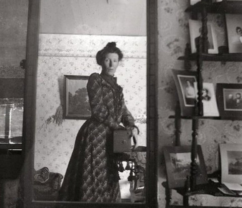 Kimliği belli olmayan bir kadının 1900'lü yıllarda aynadan kendini çektiği bir görüntü..