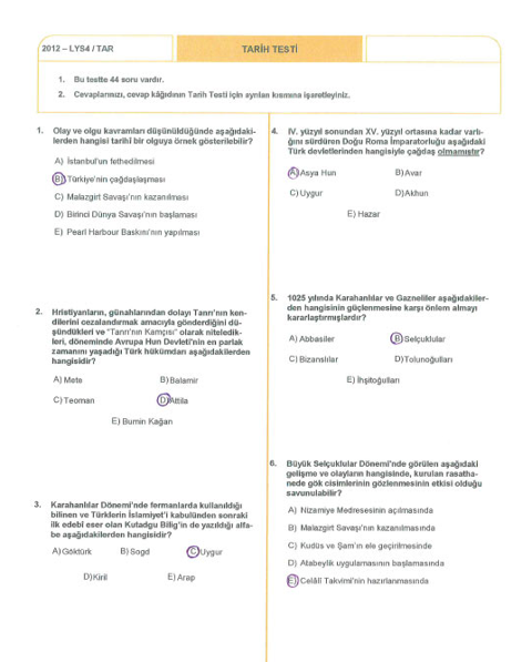 Üniversite adaylarının katıldığı Lisans Yerleştirme Sınavı'nın (LYS) Sosyal Bilimler Sınavı (LYS-4) sona erdi. İşte binlerce öğrencinin ter döktüğü sınavın soru ve cevapları... (bugün.com.tr'den alınmıştır)