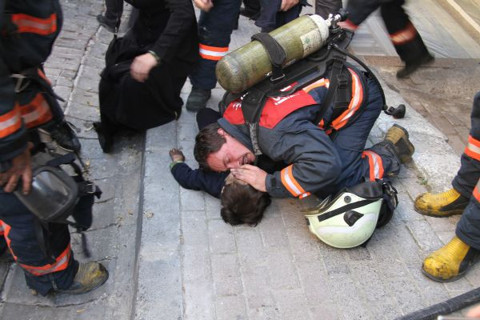 Galerinin tamamı için tıklayınızYangından kurtarılan 3 kardeşten durumu ağır olan 5 yaşındaki Davut Muhammedali'ye itfaiye ekipleri evin önündeki kaldırımda hem kalp masajı ve suni teneffüs yaptı ancak tüm uğraşlara rağmen minik Davut hayatını kaybetti.