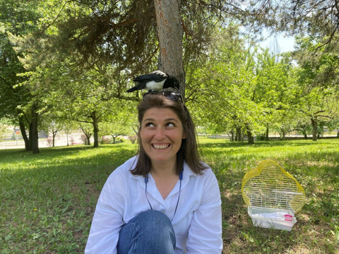 İyileştirdiği karga yalnız kalmasın diye mesaiye getiriyor