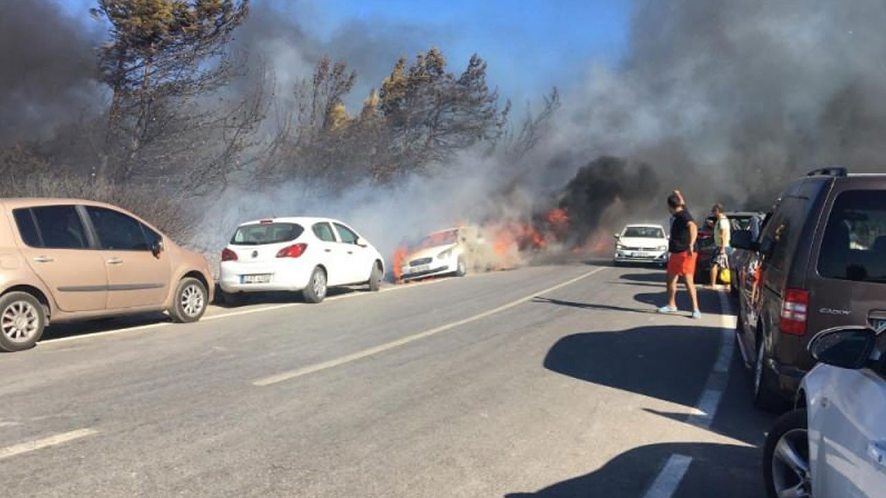 Sığacık Mahallesi'nde bulunan Ekmeksiz Plajı yakınlarında otluk alanda henüz belirlenemeyen nedenle yangın çıktı. İhbar üzerine bölgeye Orman Genel Müdürlüğüne bağlı 3 helikopter ve 12 arazöz sevk edildi.Rüzgarın etkisiyle büyüyen yangının evlerin yanına kadar ilerlediği öğrenildi. İzmir Orman Bölge Müdürlüğü ve itfaiye ekiplerinin müdahalesiyle yangın yaklaşık 1 saat sonra kontrol altına alındı. Ekiplerin soğutma çalışmalarının sürdüğü yangında yaklaşık 10 hektar alanın zarar gördüğü bildirildi. - Yaklaşık 50 araç kullanılamaz hale geldi Öte yandan, yangın alanının yakınında bulunan plaja denize girmek için gelenlerin araçları da yangından etkilendi.Yangın bölgesinin yanındaki yolda park halinde bulunan yaklaşık 50'den fazla araç, yangın nedeniyle kullanılmaz hale geldi. Hem yangının çıkış nedeni hem de yangından etkilenen araçların kesin sayısının yapılan incelemelerinin ardından açıklanacağı bildirildi. "Evin anahtarı bile yanmış" Ailesiyle Ekmeksiz Plajı’na giden Nida Akçay plajda oldukları sırada yukarı tarafta yangın çıktığını duyduklarını ve buraya doğru gittiklerini belirtti. Bölgeye gidence araçların yandığını gören Akçay, "Bizim arabamız da yandı. Nasıl döneceğiz bilmiyorum. Çantamız, paramız, kartlarımız, hepsi içinde yandı. Evin anahtarı bile yok. Hepsi içinde yanmış." diye konuştu.