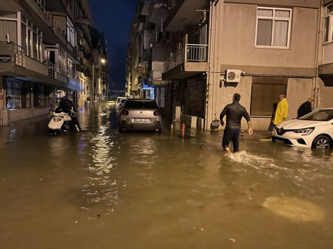 İzmir'de deniz taştı, cadde ve arka sokaklar su altında kaldı gün ağardı hasar ortaya çıktı